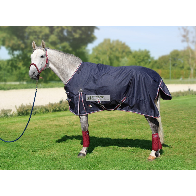 Derka padokowa i stajenna wykonana z przeciwdeszczowego materiału o grubości 600D. Podszyta na grzbiecie polarem.