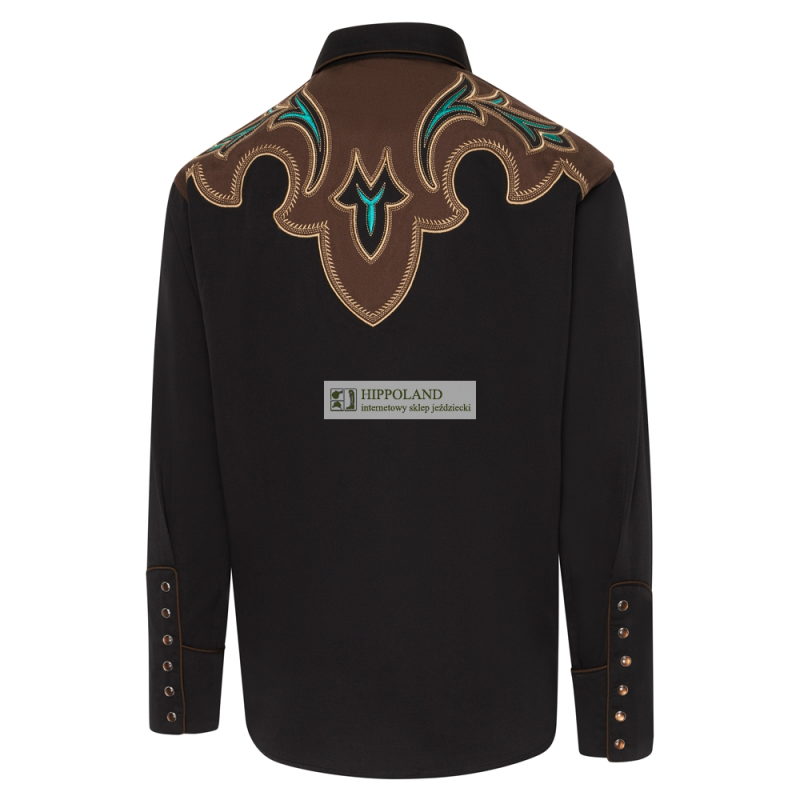 Koszula została wykonana z trwałego i przyjemnego w dotyku materiału, który zapewnia komfort noszenia przez cały dzień. Dopasowany krój podkreśla sylwetkę, a starannie dopracowane detale – takie jak zatrzaski zamiast klasycznych guzików czy charakterystyczne przeszycia – nadają jej autentycznego kowbojskiego charakteru.