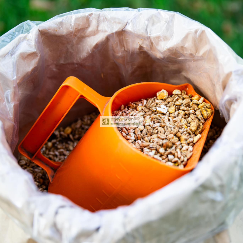 Skład: jęczmień ekspandowany, kukurydza ekspandowana, jęczmień płatkowany, kukurydza płatkowana, melasa buraczana,wysłodki buraczane, susz jabłkowy, olej lniany, mączka z lucerny, otręby pszenne, premix witaminowo - mineralny, węglanwapnia, fosforan dwuwapniowy, chlorek sodu, tlenek magnezu.