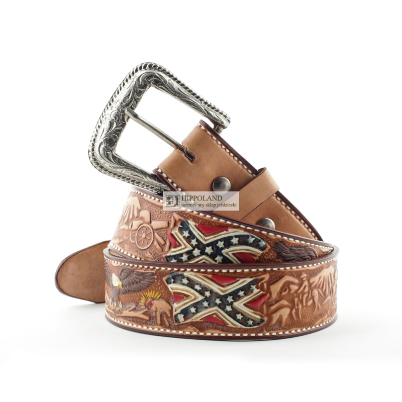Pasek w stylu western Stars & Stripes to charakterystyczny element garderoby inspirowany modą kowbojską i kulturą country. Łączy tradycyjne rzemiosło skórzane z wyrazistym designem, dzięki czemu stanowi zarówno praktyczny dodatek do spodni, jak i mocny akcent stylizacyjny.