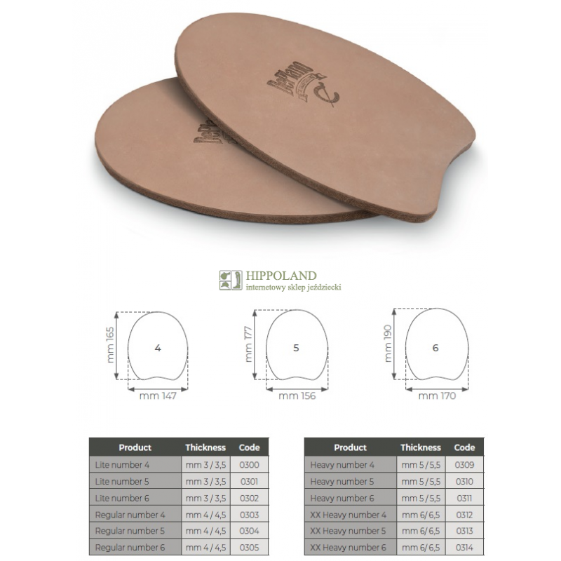Podkładki skórzane pod podkowy włoskiej firmy Deplano. Wykonywane w wersji Light, Regular i Heavy.