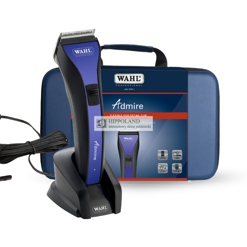 Wahl Admire to maszynka bezprzewodowa wyposażona w silnik prądu stałego o prędkości obrotowej 5300 obr./min. Wbudowany akumulator litowo-jonowy oferuje do 120 minut elastycznego przycinania i może być ponownie użyty w ciągu 80 minut szybkiego ładowania. Maszynkę można używać zarówno bezprzewodowo, jak i przewodowo co zapewnia niekończące się przycinanie.