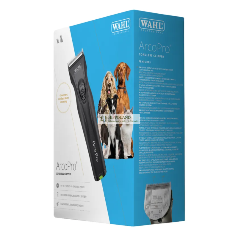 Wahl Arco Pro to niezawodna, cicha i lekka maszynka bezprzewodowa do strzyżenia zwierząt. Jest to nowy, ulepszony model maszynki Wahl Arco. Wyposażona została w dwa wymienne akumulatory litowo-jonowe, które nie posiadają efektu pamięci oraz wskaźnik led poziomu naładowania baterii.